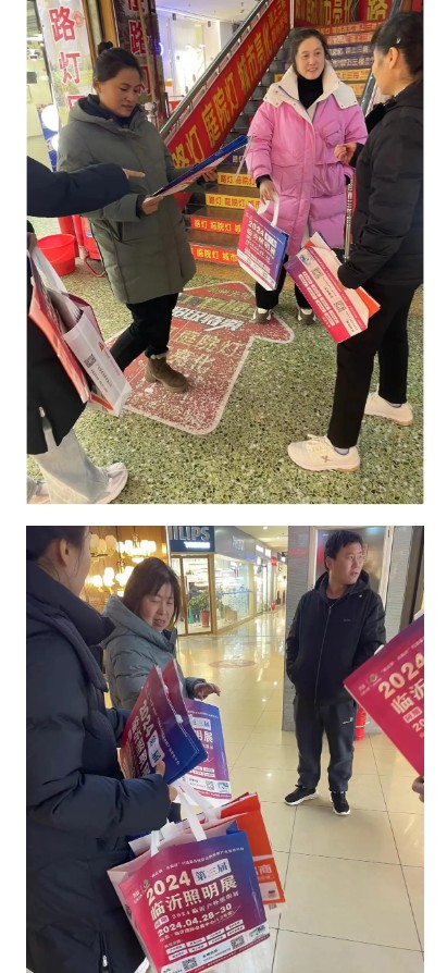 为做好2024(第三届)临沂照明展览会的宣传工作,充分抓好专业观众的数量和质量,组委会开启了线下地推宣传工作,通过面对面、一对一送达邀请函的形式,实地精准邀约意向经销商、采购商,确保到场专业观众的精准性,为展会的盛大举办做足准备。