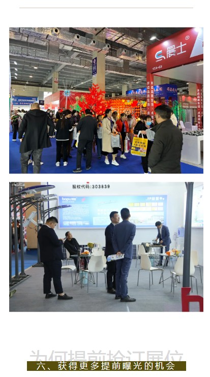 另外,企业提前预定展位后,会被组委会列入到推荐企业和相关宣传资料中,同时会在展会官网、微信平台、朋友圈宣传、抖音、各大自媒体平台等进行全方位、立体式宣传,提升企业知名度,吸引更多客户,在推广产品中也能起到更好的效果。