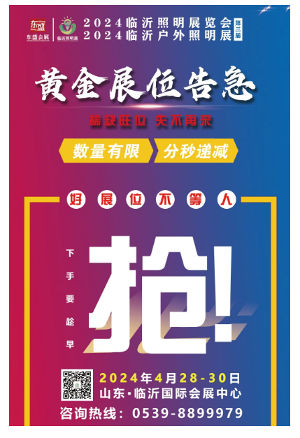 2024(第三届)临沂照明展览会作为照明行内专业的交流平台,企业在预定展位后,组委会赠送各位参展商《中国市场行》宣传,将展商信息紧紧跟随《中国市场行》地推宣传的脚步,出现在国内照明类展会现场、北方五省的灯具市场,叠加宣传,突出前置效果,从而帮助企业在参展期间获得更多的曝光机会,为参展商品牌赋能。